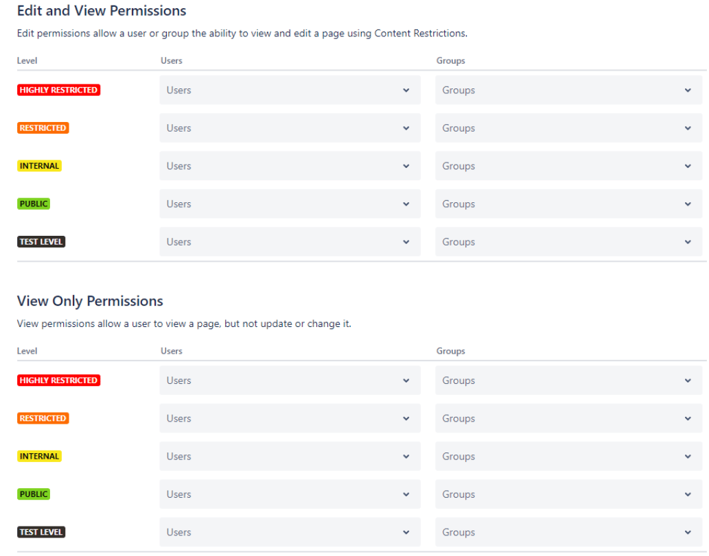 Align page access with your data governance policies and centrally manage which users or groups have view or edit permissions. Restriction Schemes enable to restricted page access to specific users or groups based on the classification level of the page. With this you can: