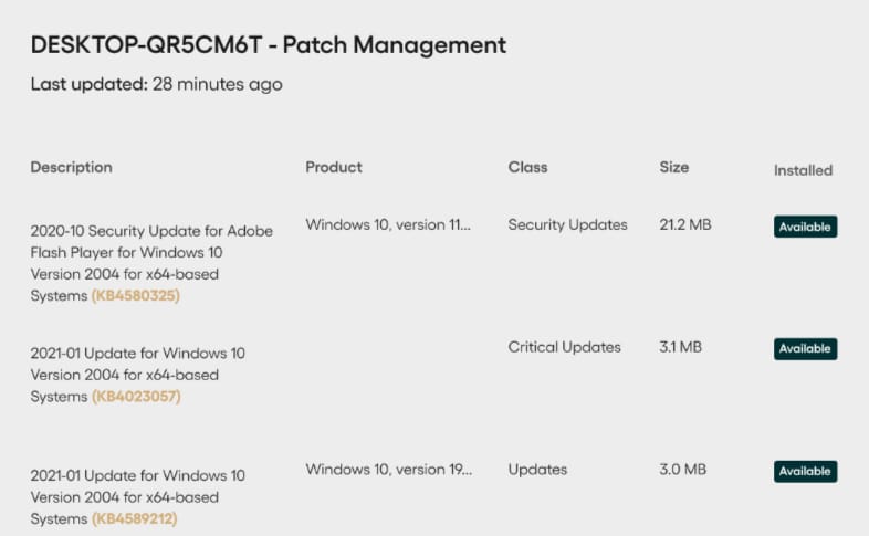 ContinuousRMM’s patch management reporting suite keeps consistently ahead of potential vulnerabilities. It offers three powerful reports that deliver detailed insights into patching status. Additionally, you can conveniently install any missing patches directly from within the report, ensuring comprehensive and proactive IT management.