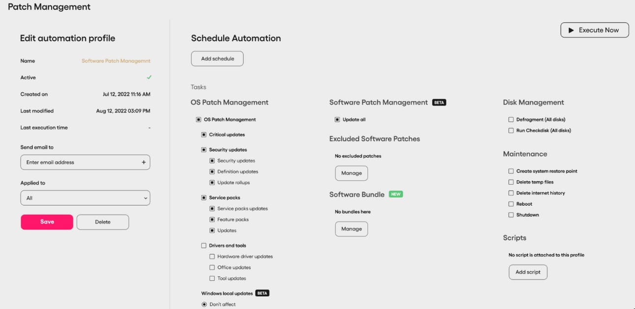 Automated Updates: ContinuousRMM automates the process of deploying software patches and updates to all managed devices, ensuring that systems are up-to-date with the latest security fixes.