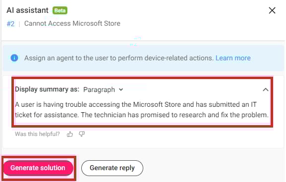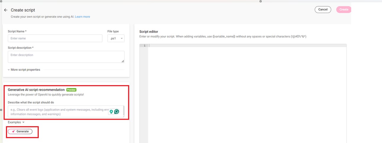 No need to start from scratch. ContinuousRMM uses AI to create draft scripts based on the ticket content. This provides a solid foundation for troubleshooting procedures and reduces manual scripting efforts.