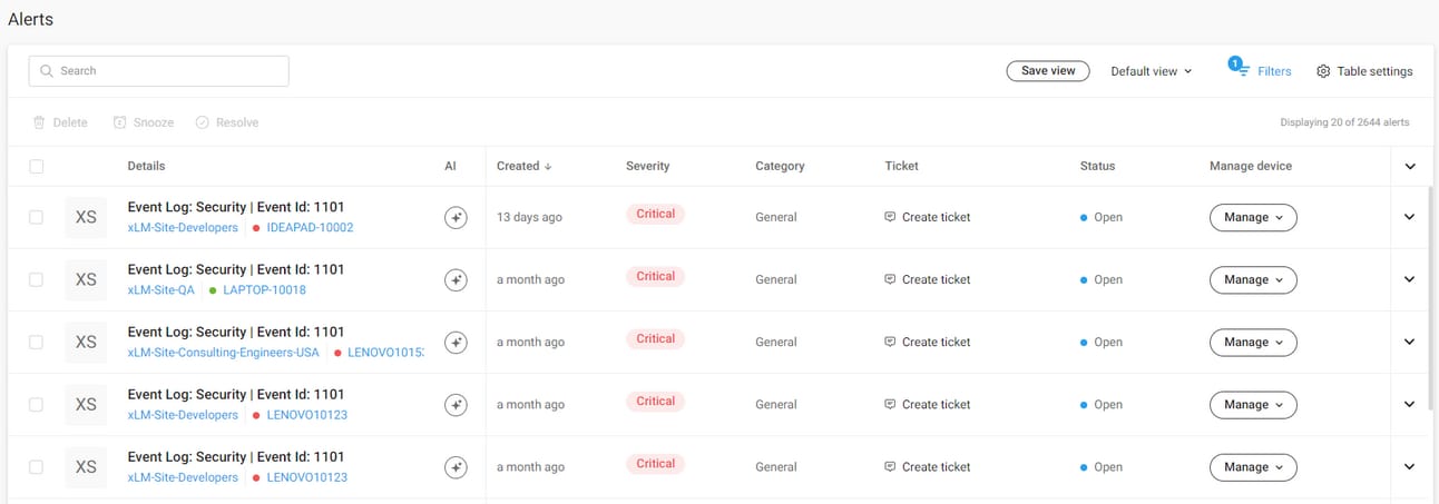 Monitor system activity in real-time, and scale up to manage as many devices, or sites as you need. With automated alerts and thresholds for different device types, get full visibility into device or group behaviors that keep you ahead of the game and two steps ahead of any looming incidents.