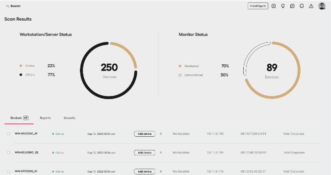 Scan Flexibility: ContinuousRMM offers both agent-based and agentless scanning options. You can leverage scanning agents deployed on the network for more in-depth information or scan agentless networks for basic discovery.