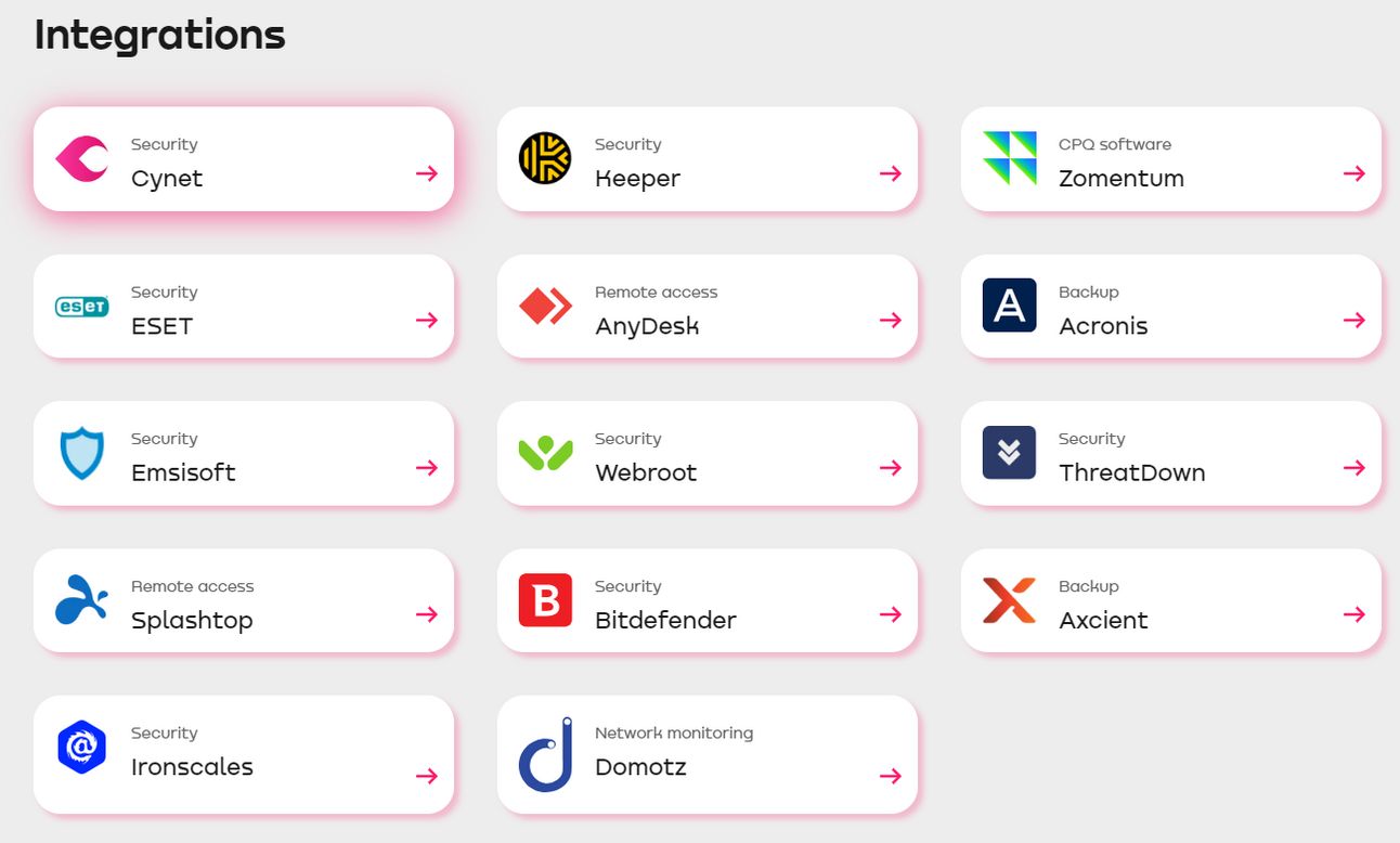 ContinuousRMM integrates with a variety of software tools to enhance its capabilities and streamline IT management processes.