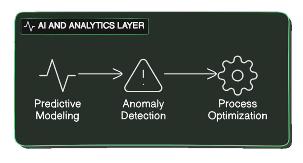 Advanced analytics and machine learning capabilities are offered by the AI and analytics layer. By utilizing high-quality data, it permits anomaly identification, process improvement, and predictive modeling.