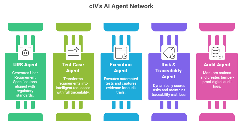 At the core of cIV lies a network of autonomous AI agents, each specialized for a key stage of the validation lifecycle: