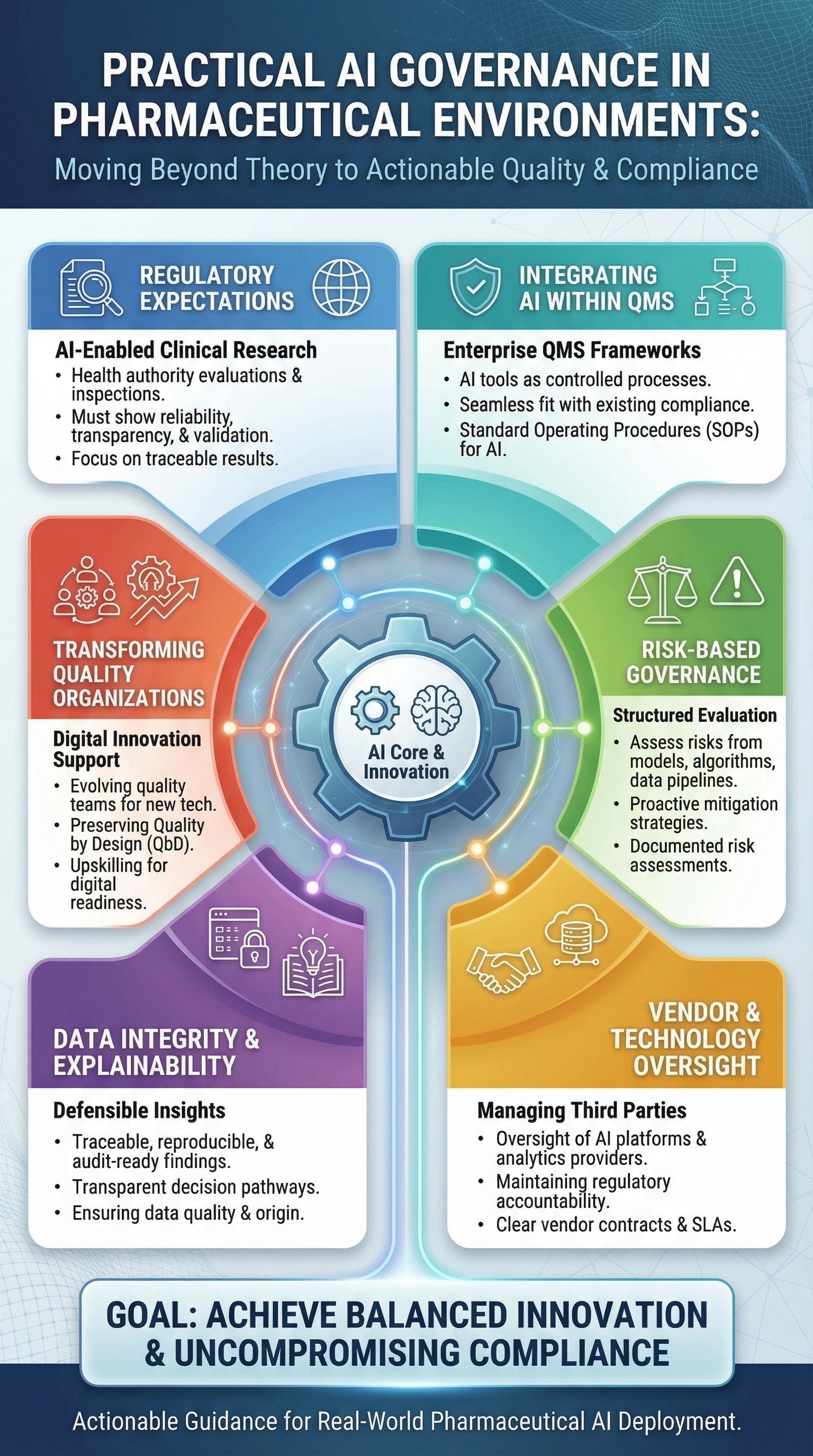 “How can pharmaceutical companies adopt AI while maintaining governance, quality oversight, and regulatory accountability in GxP environments?”