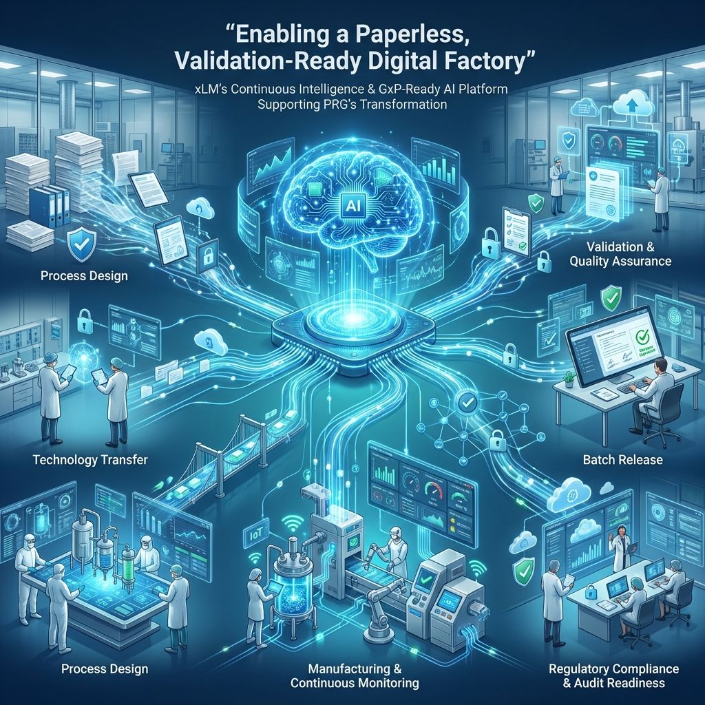 xLM will comprehensively outline how its Continuous Intelligence and GxP-ready AI platform robustly supports PRG’s journey toward achieving a paperless, fully digitized, validation-ready operation. This platform is designed to streamline and enhance every aspect of the digital twin platform, ensuring that compliance is built-in from day 1.